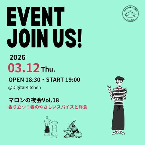 【イベント名】香り立つ!春のやさしいスパイスと洋食~マロンの夜会Vol.18~