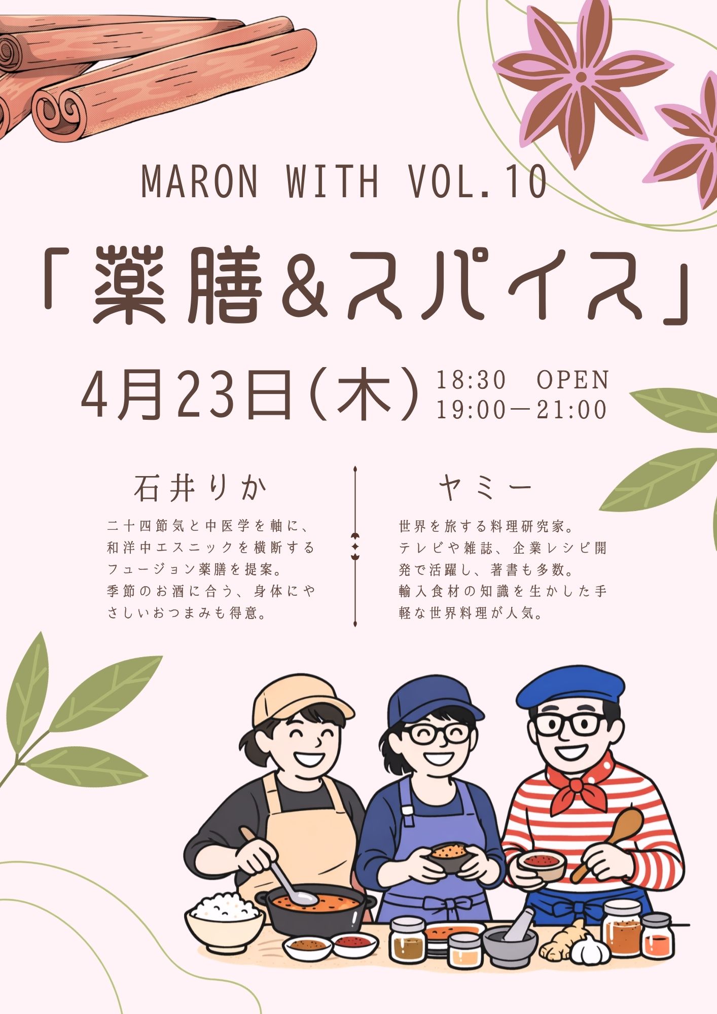 ご好評をいただいております、フードスタイリスト マロンがプロデュースする料理イベント「MARON WITH(マロンウィズ)